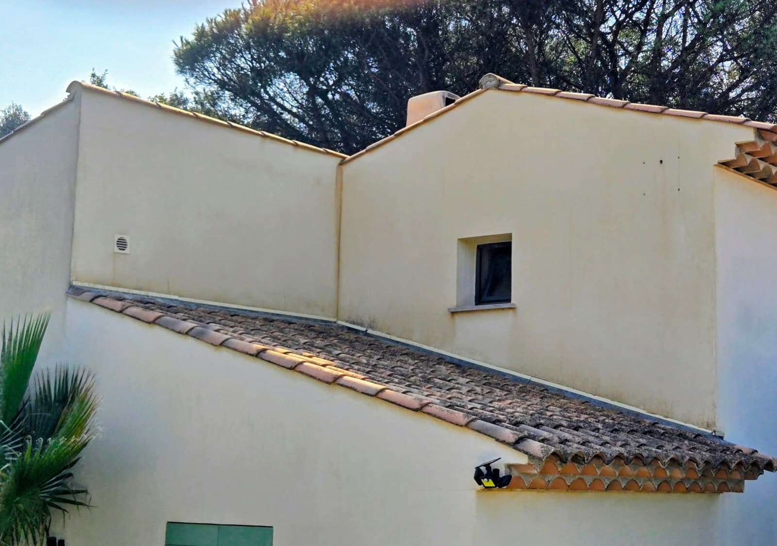 En complément des capacités du drone, nous sommes équipés de perches télescopiques pouvant atteindre 15m de haut et sur lesquelles nous pouvons adapter différentes brosses, rouleaux ou buse de pulvérisation pneumatique. Ces outils nous permettent d’atteindre les plus petits coins ou retours de toiture garantissant ainsi une finition très soignée.