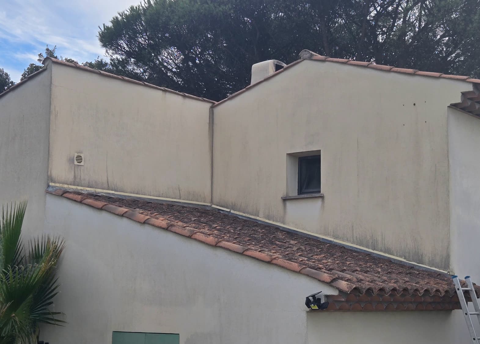 En complément des capacités du drone, nous sommes équipés de perches télescopiques pouvant atteindre 15m de haut et sur lesquelles nous pouvons adapter différentes brosses, rouleaux ou buse de pulvérisation pneumatique. Ces outils nous permettent d’atteindre les plus petits coins ou retours de toiture garantissant ainsi une finition très soignée.